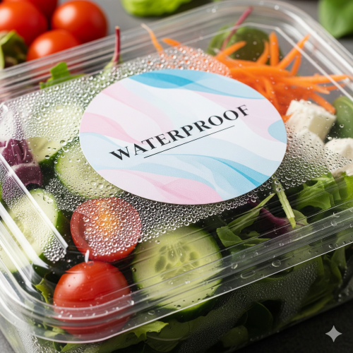 อาหารส่วนใหญ่มักมีความร้อน ความชื้น หรือต้องนำไปแช่ตู้เย็น (Chilled) ดังนั้น การใช้สติ๊กเกอร์เนื้อกระดาษธรรมดาจึงเป็นข้อห้ามเด็ดขาด เพราะกระดาษจะเปื่อยยุ่ยทันทีที่โดนไอน้ำ